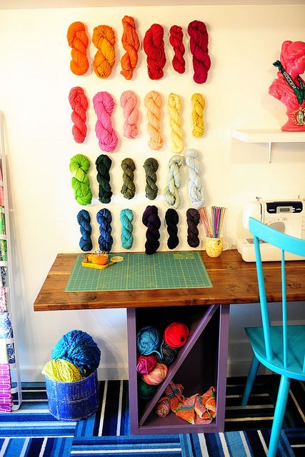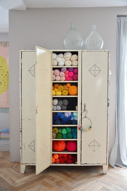 - Визначте за якими категоріями розділяти пряжу: за кольором, вагою, текстурою. Тримаючи пряжу за подібними характеристиками можна з легкістю знайти потрібне у потрібний момент.