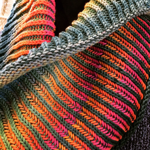 Сама по собі англійська резинка досить гарно підходить для в’язання шаликів та снудів. Використовуючи товсту пряжу та великий розмір спиць можна досягнути бажаний великий об’єм. А простота лише буде підкреслювати його. Та додаючи ще одну контрастну нитку до головної можна отримати подібний до фабричного виріб, з кольоровими вертикальними колонками, які з кожного боку різнитимуться.