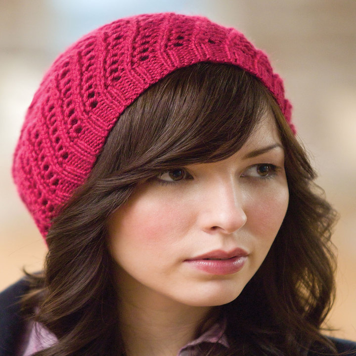 Берет з ажурним візерунком спицями