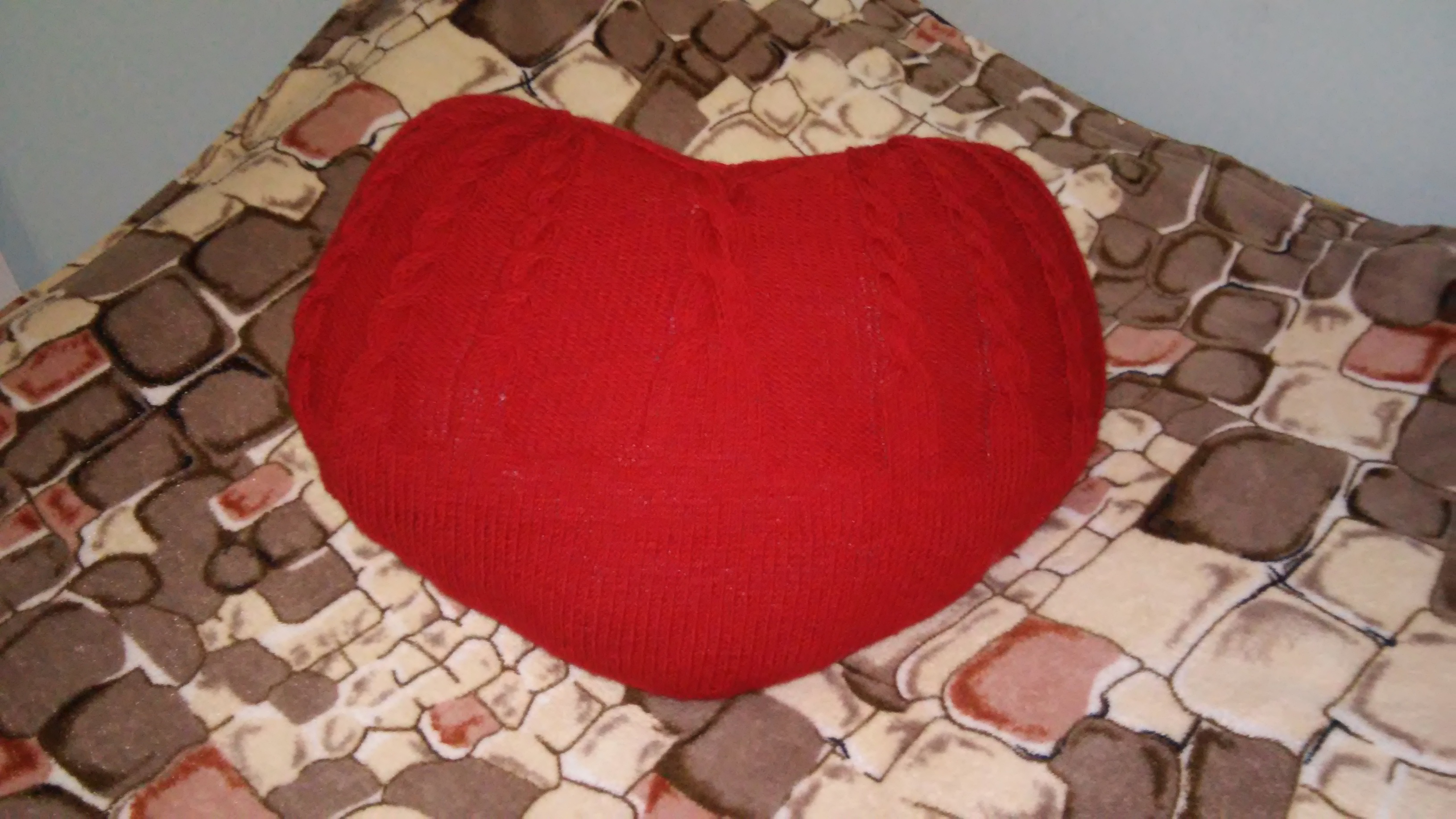 Кілька тижнів тому на день Святого Валентина я подарувала своєму коханому ось таку подушку, яка тепер прикрашає наш диван. Подушка досить м’яка і зручна. Натхнення до мене прийшло одного зимового вечора, коли переглядала різноманітні пости, як зробити в’язані подушки. Але там були не цільно в’язані варіанти, а зі старих вінтажних світерів зробленні декоративні наволочки, що мені не підходило. Люблю важкий тернистий шлях.