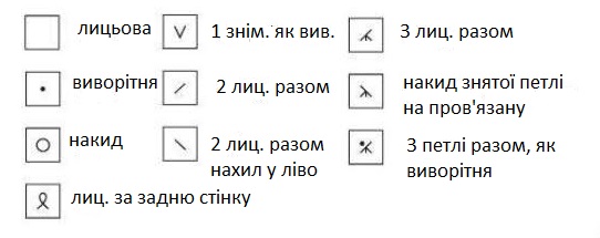 Наступний ряд: * 30 (34, 38, 41, 45) лицьових, пропускаємо маркер, змінаємо одну петлю виворітньою за задню стінку, пропускаємо маркер*, 30 (34, 38, 41, 45) лицьових, пропускаємо маркер і повторюємо за * ще раз. Пров’язуємо останній радок близько 5 см, і в останньому рядку виймаємо маркери з візерунка.