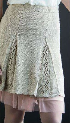 Вона запала мені у душу, бо хоч і виглядає досить просто, але ажурні вставки кокетливо привертають до себе увагу. Як на мене то це досить простий приклад в’язання спідниці спицями.