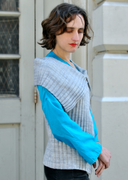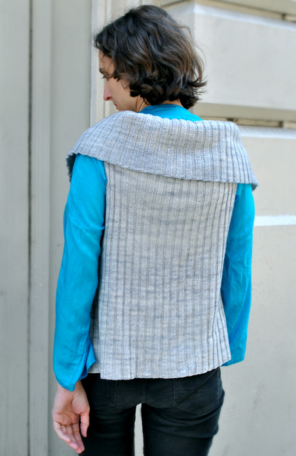 Перевагою цієї жилетки – те, що її можна одягати у різні способи: довший комірець коротша жилетка, або довша жилетка і коротший комірець.
