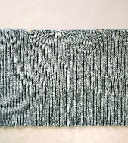 Наступний ряд: *3 вив, 3 лиц* до останніх 5 петель – 3 вив, 1 лиц, 1 за передню і задню стінку, лишається – 78 (96) петель;