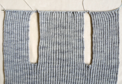 Утворилось: 78 (96) петель з лівого боку, 129 (147) петель на спинці, 78 (96) петель з правого боку, загальна кількість – 285 (339) петель.