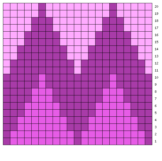 Крок 5: Пров’язуємо орхідеєю ще 7 рядків, і переходимо до наступної темно фіолетової пряжі, слідкуючи за схемою.