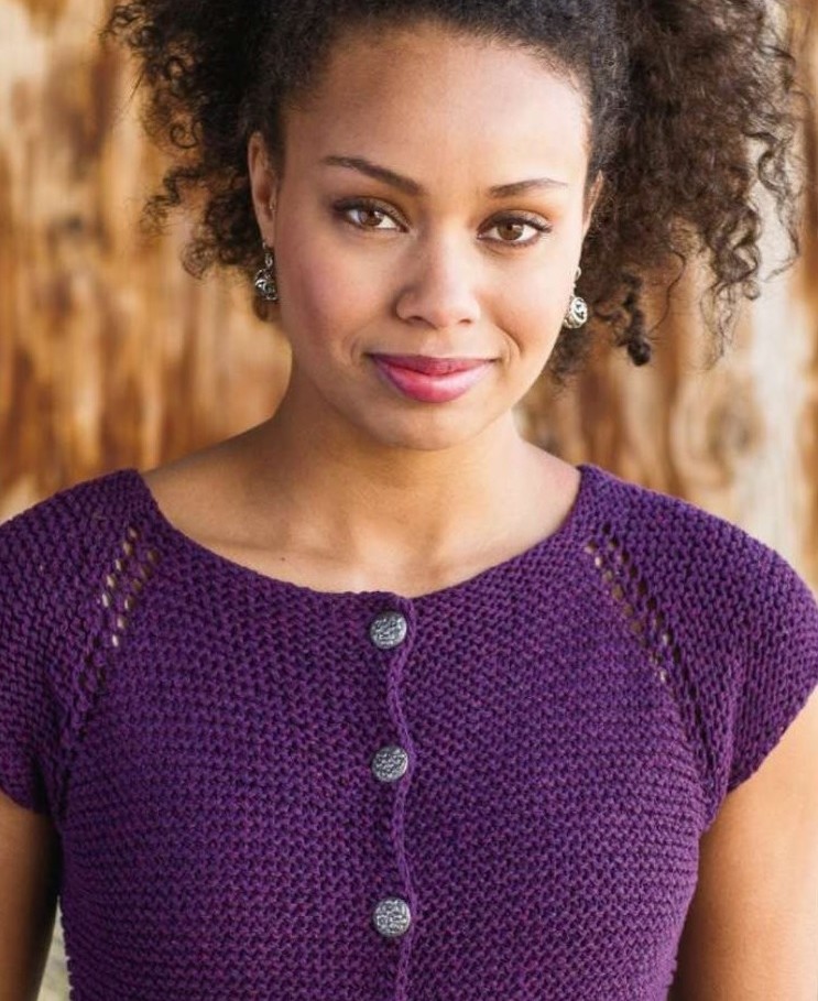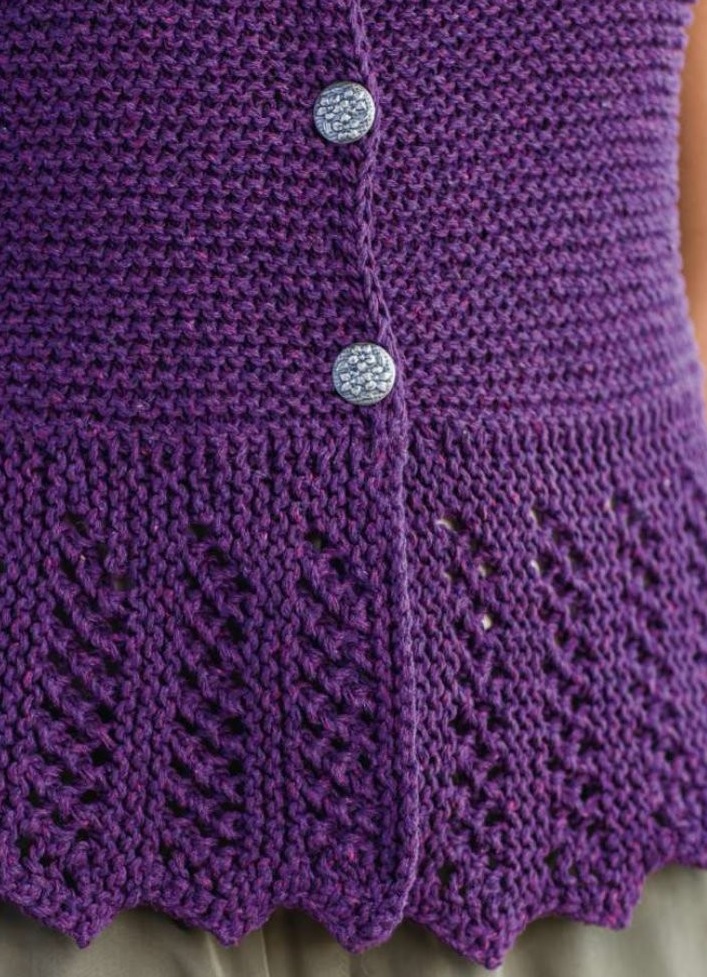 Дизайн цього літнього в’язаного кардигану створила Донна Кай, а з’явився він на світ у одному із примірників Interweave Knits.