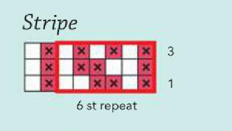 Та не забуваємо про іншу спицю, на якій буде візерунок за схемою Stripe. Починаємо в`язати з третього і повторюємо всю схему 13 разів.