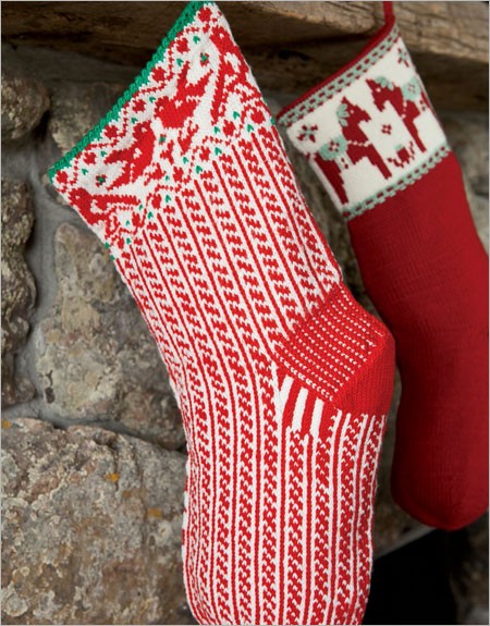 В`язаний панчох з червоно-білим візерунком можна віднести до шведського декоративного мистецтва. Який на початку оздоблений пташками, а згодом зірками та лозами. Приклад цього жакардового панчоха я знайшла у одному журналі Interweave Knits Holiday Gifts 2012, від чудової дизайнерки Крістін Шпаркланд. Можливо іншим разом ще покажу вам її роботи 😉