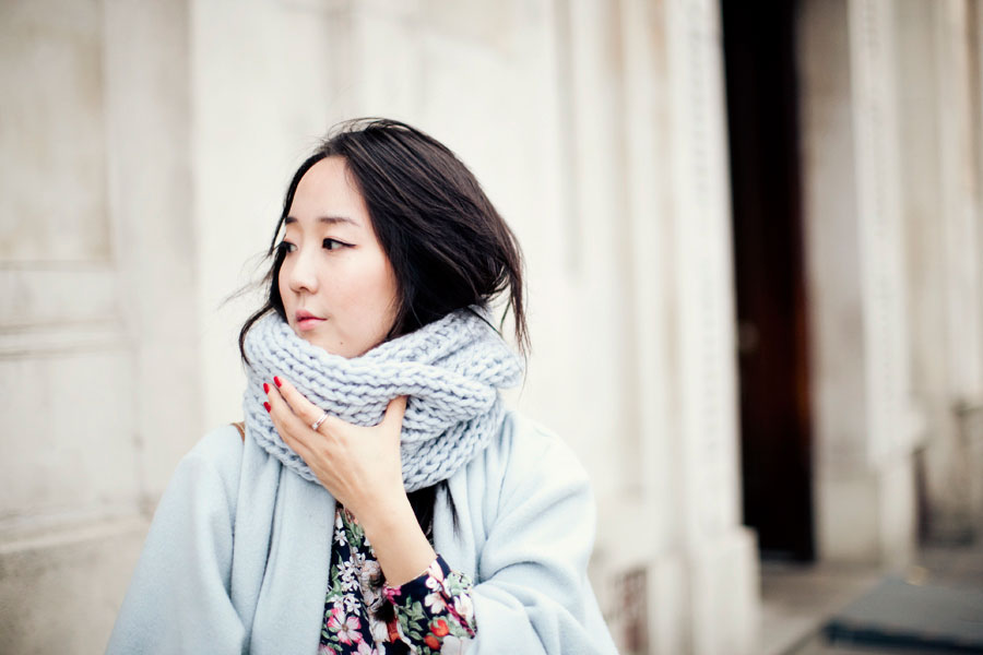 Закриваємо петлі і лишаємо довгий кінчик пряжі. Зшиваємо два кінця шарфа і виходить у нас снуд.