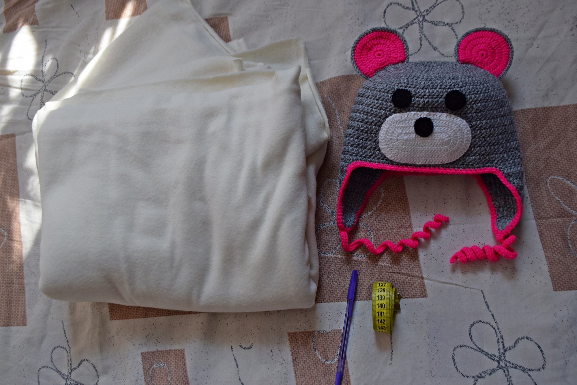 Бер/yak-vikroiti-i-vshiti-pidkladku-iz-flisu-u-vyazanu-shapochku-z-vushkami/мо нашу шапочку, робимо заміри, розкладаємо фліс на твердій рівній поверхні і починаємо кроїти.