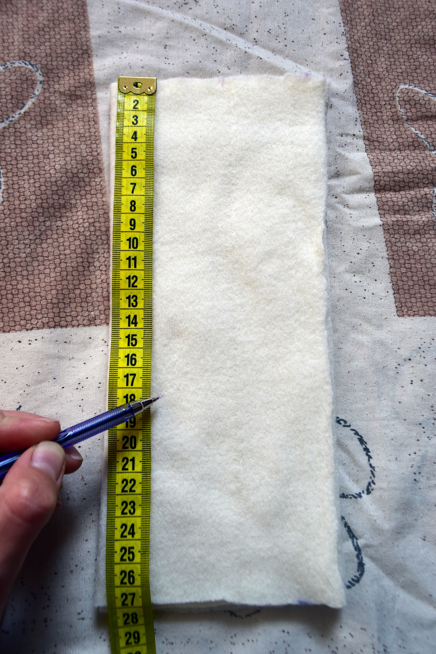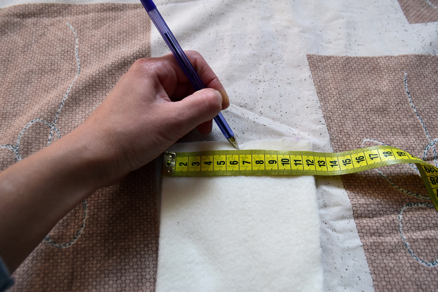 Відмічаємо довжину і ширину, додаємо по півсантиметра на шви і вільне облягання, вирізаємо.