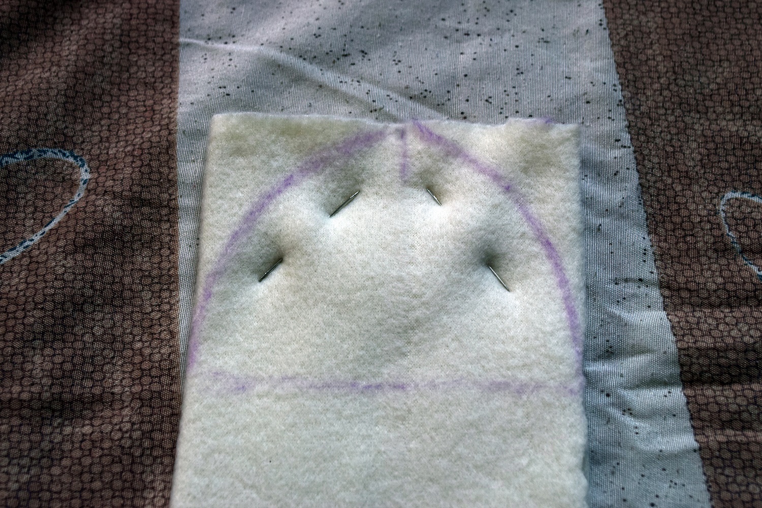Вир/yak-vikroiti-i-vshiti-pidkladku-iz-flisu-u-vyazanu-shapochku-z-vushkami/ізаємо наші клинці. Для того, щоб матеріал не ковзав, закріплюємо його шпильками.